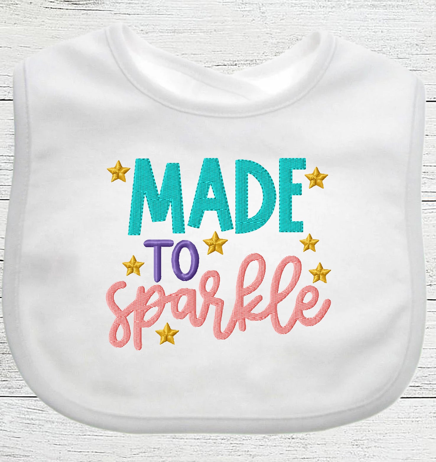 Funny Baby Bib "Made To Sparkle" Boy Girl Gift EMBROIDERED BABY BIB