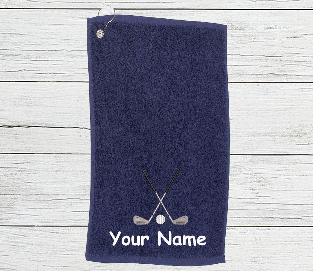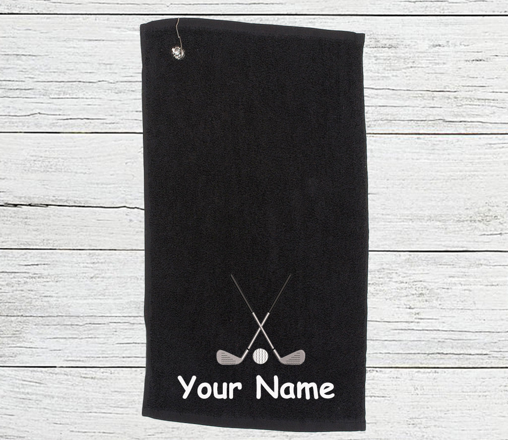 Personalised Golf Towel embroidered with golf clubs and your text/name