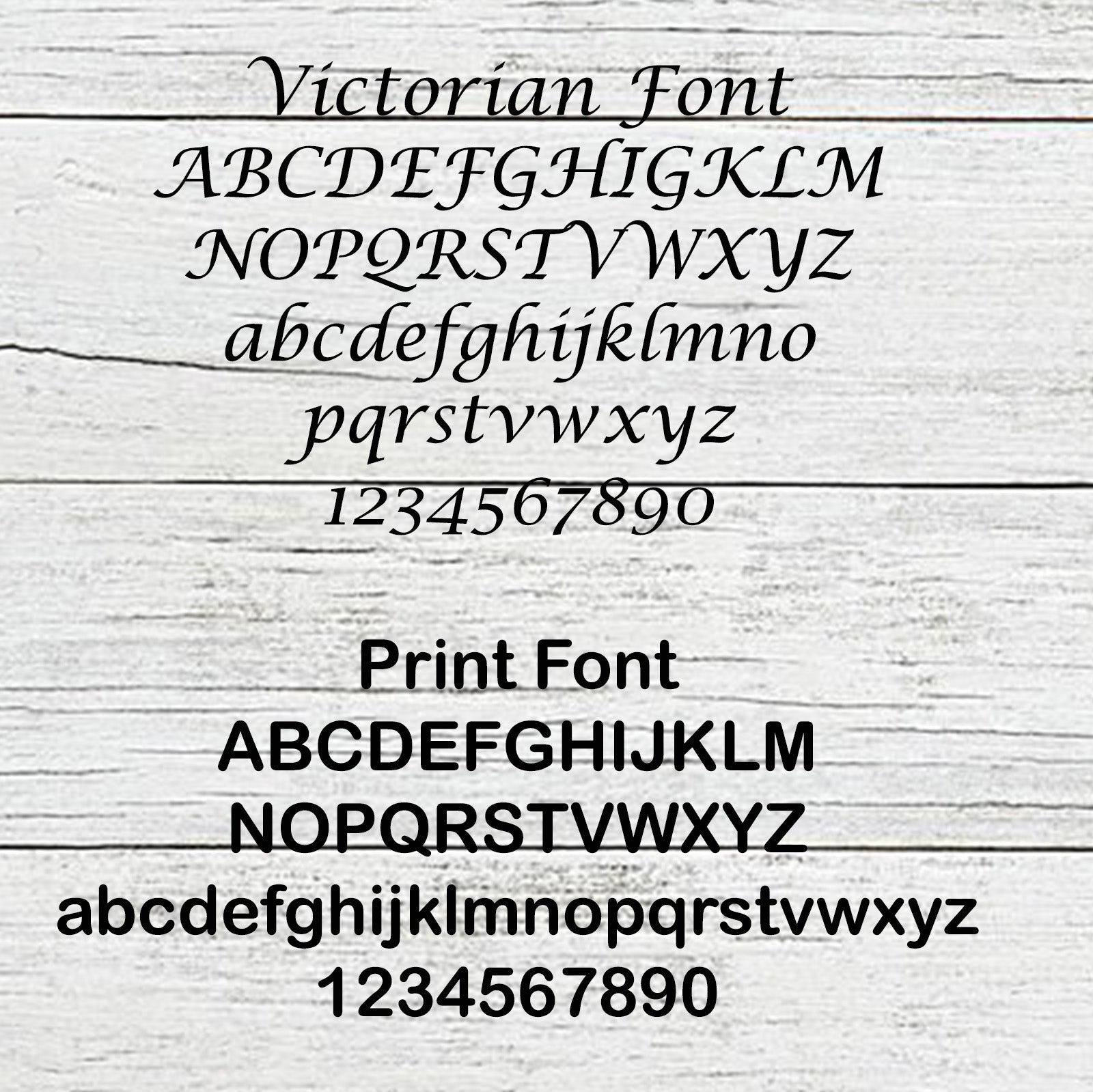 You select the thread colour and lettering font style you like the best please see images for colours and font styles.
